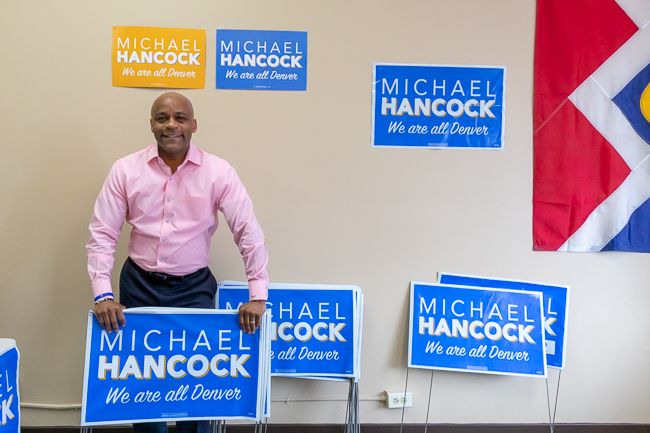 Denver Mayor Michael Hancock in his Five Points campaign office. Photo: Andy Bosselman