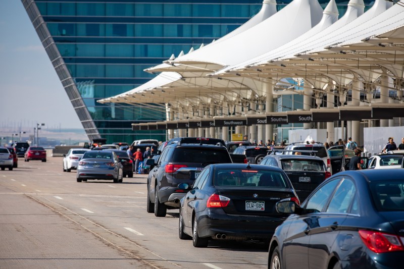Cars crowd the terminal at Denver International Airport. Image: DIA