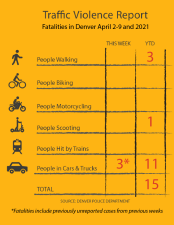 Traffic Violence Report: 15 People have Died from Denver Traffic Violence in 2021, Keeping Pace with 2020